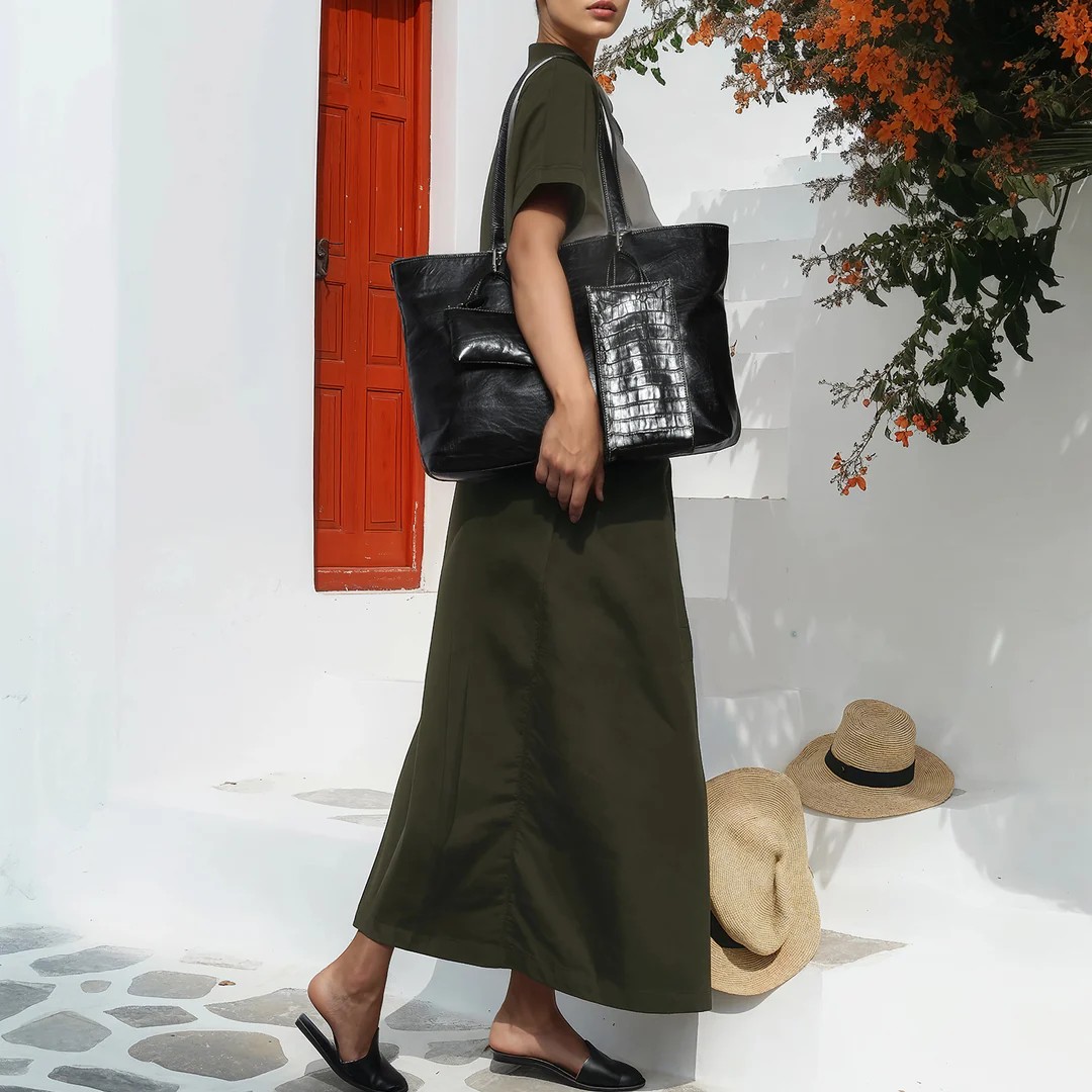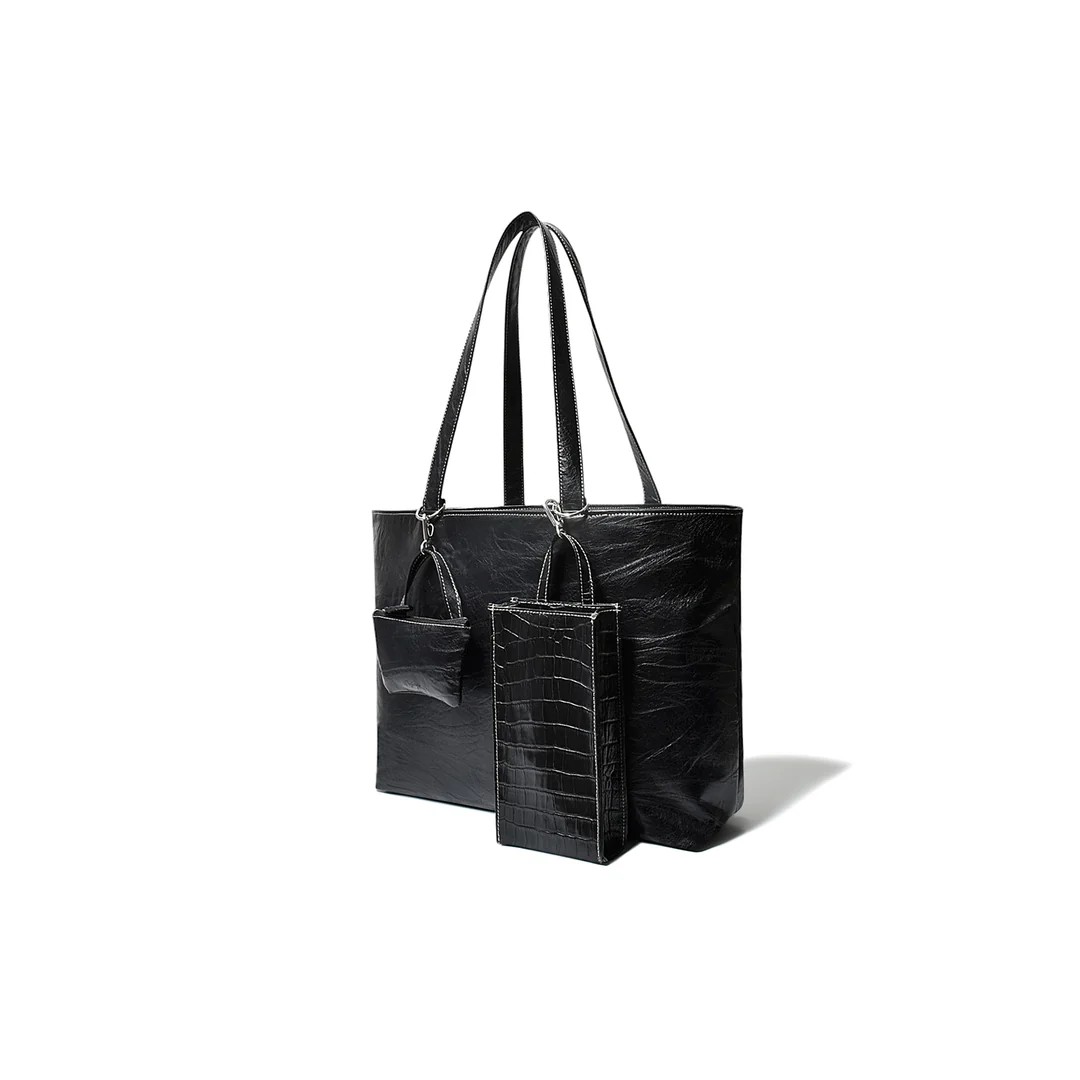 | 今回ご紹介するのは“いいもの持ってる”って言われたい人へ。本革トートの最旬セットボッカトートに使われているのは、絞りジワ加工を施した牛革。まるで紙のように軽やかでしなやかなのに、手に取るとしっかりとした重厚感。光の加減や使い込むほどに深まる“革の表情”は、見る人の視線を引きつけます。カジュアルにもモードにもマッチする、男女問わず使えるユニセックスデザイン。同色のクロコ型押しレザーを使った縦型スマホケースは、バッグとの相性も抜群。スマートフォンをサッと出し入れできる設計で、デザイン性と機能性を両立。取り外して単体でも使用できるので、ちょっとした外出やオフィスシーンにも活躍します。セットのチャームは、ただの飾りではありません。クレジットカード、小銭、リップ、鍵などを収納できるミニバッグ型の実用チャーム。ボッカトートのハンドルに付属したDカンに取り付ければ、ワンポイントのアクセントに。さらに、バッグの中に入れればポーチやポケット感覚で使えるので、バッグの中もすっきり整います。可愛さと機能を兼ね備えた、まさに“小さな本命バッグ”。 【ボッカトート 3点SET】 上質なレザーの質感、計算されたデザイン、使い心地まで。今、手に入れておきたい“使える名品”をまとめた、欲張りなセット。 セット内容 1.ボッカトート(牛革/絞りジワ加工) 2.バーチカルスマホケース(同色クロコ型押し) 3.ミニバッグチャーム(収納機能付き) 特徴 ・本革なのに軽くて柔らかい絞りジワ加工 ・男女問わず使えるユニセックス仕様 ・取り外せるスマホケースで使い方自由自在 ・バッグに付けても、ポーチとしても使えるミニチャーム ・セットで持つと、統一感がぐっと高まる ・ギフトにもぴったりな高級感ある3点セット ・国産最高級牛革を日本の職人が丁寧に造り上げる。 ■カラー本体/絞りジワ加工ブラック バーチカルスマホケース:クロコ型押しブラック ミニバッグチャーム:絞りジワ加工ブラック ■サイズ本体/(上横=約44cm / 下横=約36cm)× 高=約30cm × 奥=約10cm。持ち手:約59cm。 ■バーチカルスマホケース/(横=約10.5cm × 高=約21cm) × 奥=約4.8cm。 ■ミニバッグチャーム/(上横=約12.5cm / 下横=約10cm)× 高=約8cm × 奥=約1cm。 ※サイズは多少の誤差はご容赦ください。 ※モニターによって色の見え方が異なる場合があります。 ※商品によって柄の出方が異なる場合がございます。 ※全ての革製品は合皮ではなく天然の素材を使用しております。 そのため、しわ、色むら、傷などそれぞれに個体差があり 全て均一の商品はございません。 天然革の本来の魅力、味としてご理解お願いいたします。 上記の理由での返品は出来かねますので 何卒ご理解の上ご購入くださりますようお願い申し上げます。 |