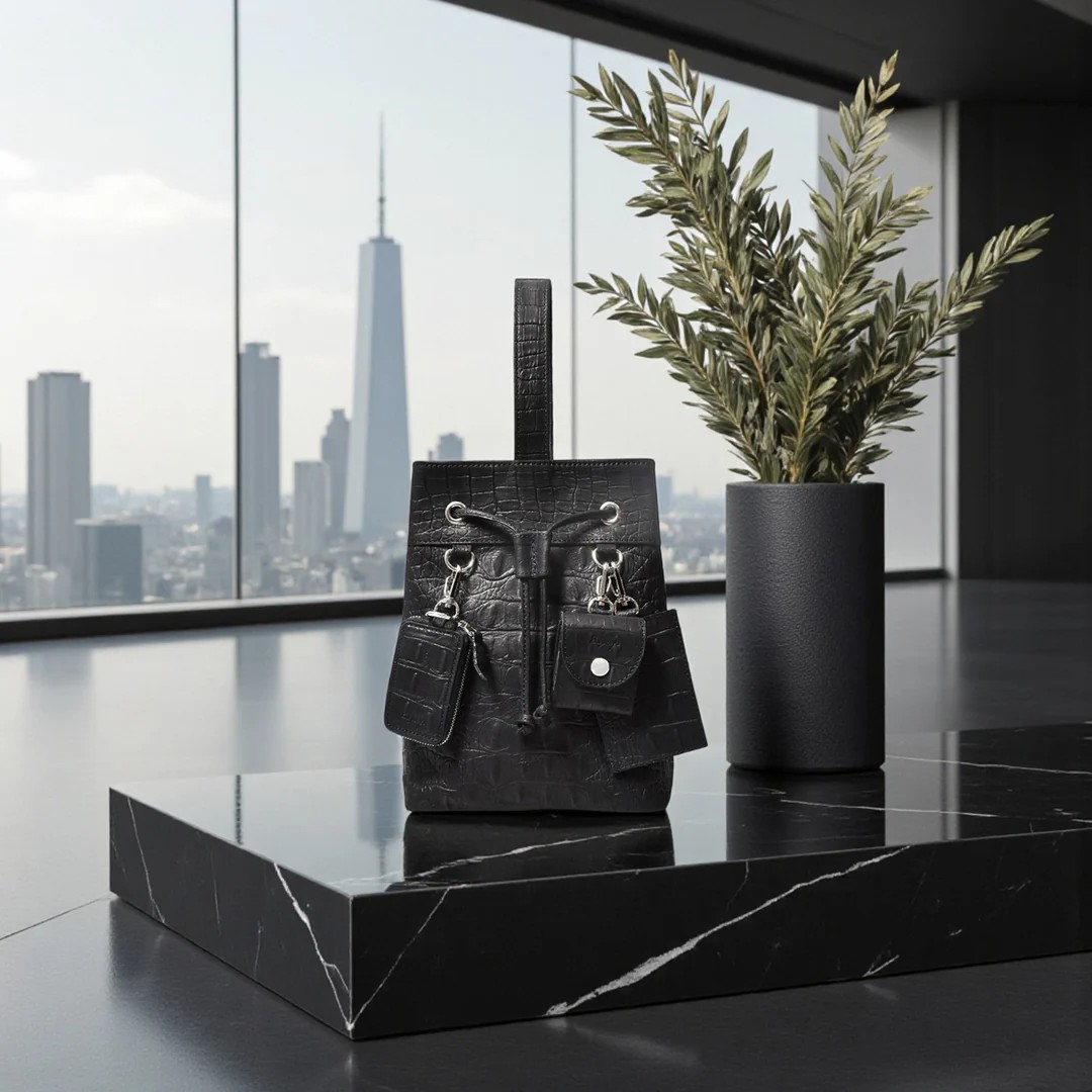 クアトロ 巾着 バッグ スマートキーケース コインケース カードケース SET クロコ型押し ローブラック