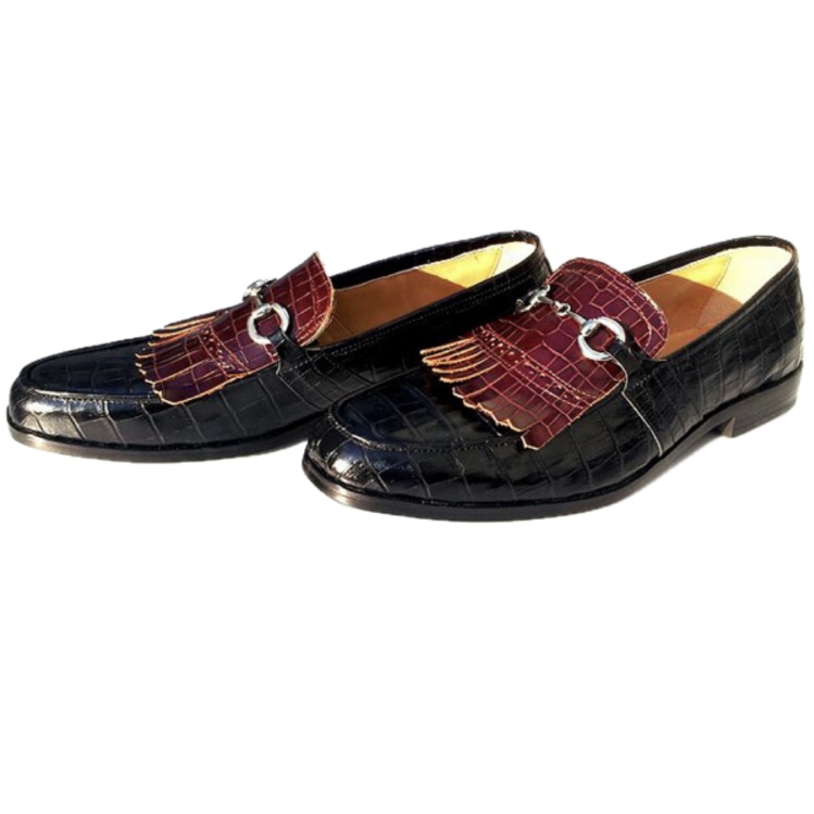 | 【BajoLugo×GCTコラボ企画!!】シルバービットの激渋タッセルロー ファーです! 最高級の牛革皮革に本物のように再現されたクロコの型押しを施しました。 【オーダーの場合お好みのビットに変更可能です。】 |