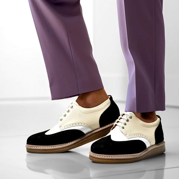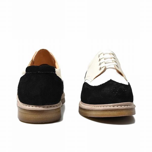 | 今回ご紹介するのは、大胆でキュートなウィングチップシューズ。まさにファッションに刺激的な変化をもたらす特別な一足。他のスニーカーとは一線を画し、スタイルに独自の輝きを加える。素材を切り替えた大胆なコンビネーションがコーデに新たな魅力を注入し、自己表現の幅を広げる。また、ぼってりとした可愛らしいフォルムに、レザーがもたらすラグジー感がプラスされ、まさにブランドコンセプトである「リッチカジュアル」を兼ね備えたアイテム。飴色のクレープ素材を使用した、現在主流の“厚底“は高くなり過ぎず25mmと控えめに。日常のスタイルにリラックス感と遊び心をもたらし、個性を際立たせる。自分らしいスタイルを楽しむためのパートナーとして、ファッションにおける新たな冒険を始めましょう!。