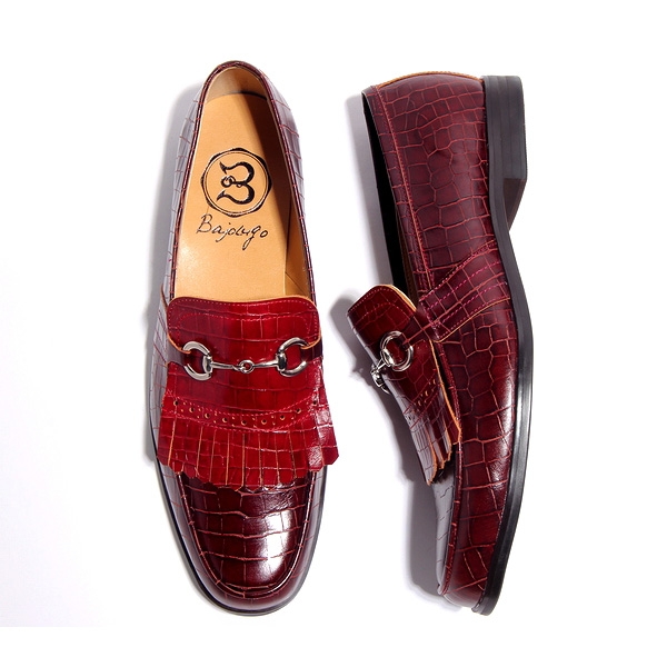 | 【BajoLugo×GCTコラボ企画!!】シルバービットの激渋タッセルロー ファーです! 最高級の牛革皮革に本物のように再現されたクロコの型押しを施しました。 【オーダーの場合お好みのビットに変更可能です。】 |