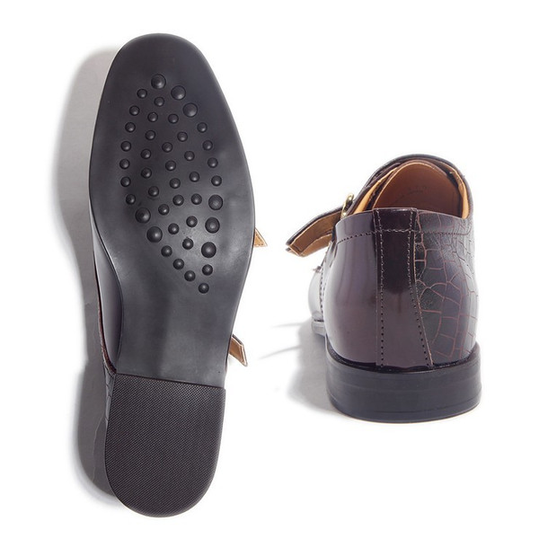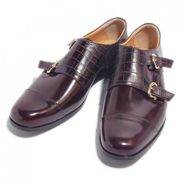 今回ご紹介するのは、しっかり感のあるクロコ調のダブルモンクストラップにムラ染め特有のフワフワ感で新しい表情を引き出したレザースニーカー。スーツでもデニムに素足でカジュアルに履いてもデザイン的には全然違和感がない。それでいて表情豊かで個性的である。 色はムラ染めレザーダークブラウン×クロコダイル型押しダークブラウン。これからの季節はいろいろなパーティで重宝しそうなダブルモンク!