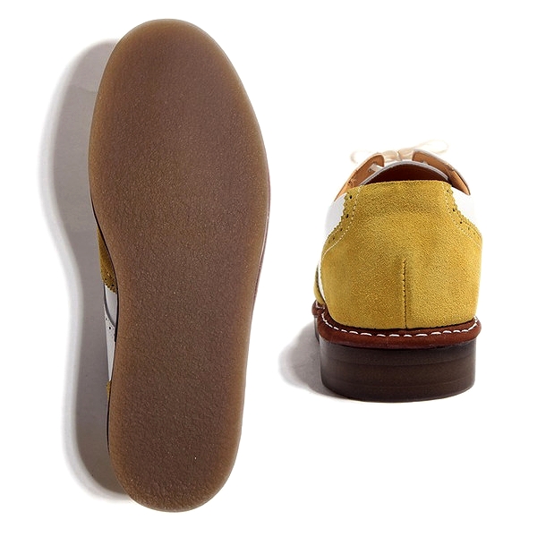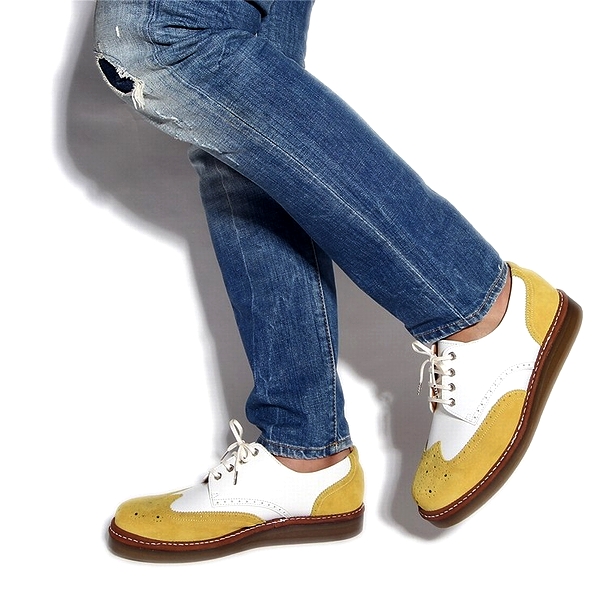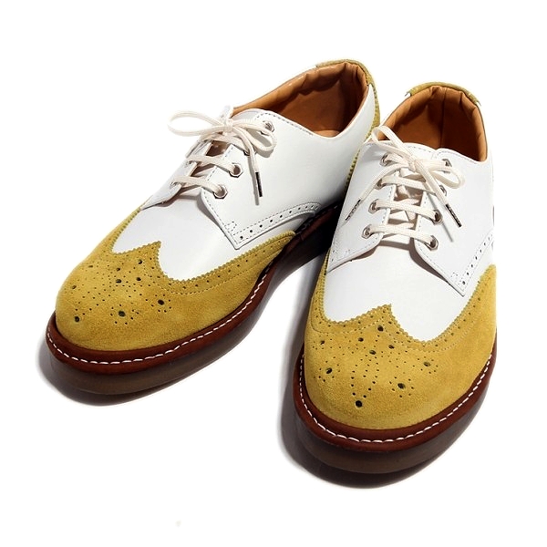 | 今回ご紹介するのは、ジーンズやスウェットパンツなどのカジュアルシーンに相性抜群な6色展開のレザーシューズ。厚めのクレープソールを装備する事でぼってりとした可愛いフォルムに。女子ウケ間違い無しの好印象スニーカー。ヒモ穴部分には珍しい六角ハトメを装着し、つま先にはメダリオンを施している。6色履きこなせればセレブカジュアルスタイルの完成だ!