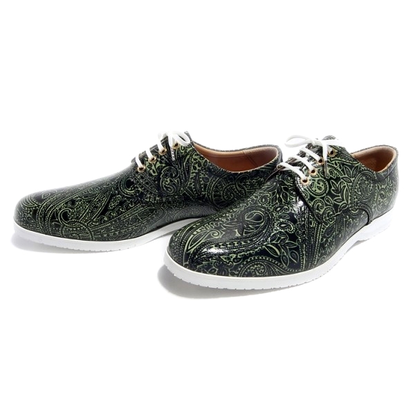 | 今回ご紹介するのは、履いているだけで思わず視線が奪われるクラシックなペイズリー。どんなスタイルにも合わせやすいシックなカラーリング。シューストックに1足あると使い回しがききそう!