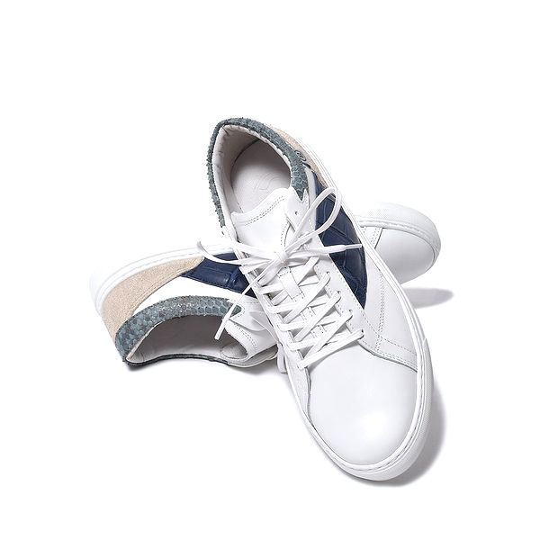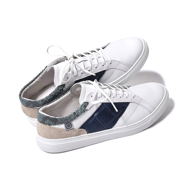 | 今回ご紹介するのは、イマドキなファッションには欠かせないラグジュアリーなスニーカー。履き口には"皮革のダイヤモンド"と呼ばれる本パイソンと、サイドパーツには"皮革の王様"と呼ばれる本クロコをチョイス。最高級皮革のスムースレザーとのコラボでスポーティなシルエットの中にエキゾチックな魅力を凝縮。これまでなかったのが不思議なくらい、まさにハマりレザー。