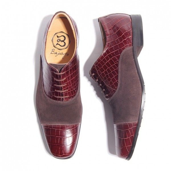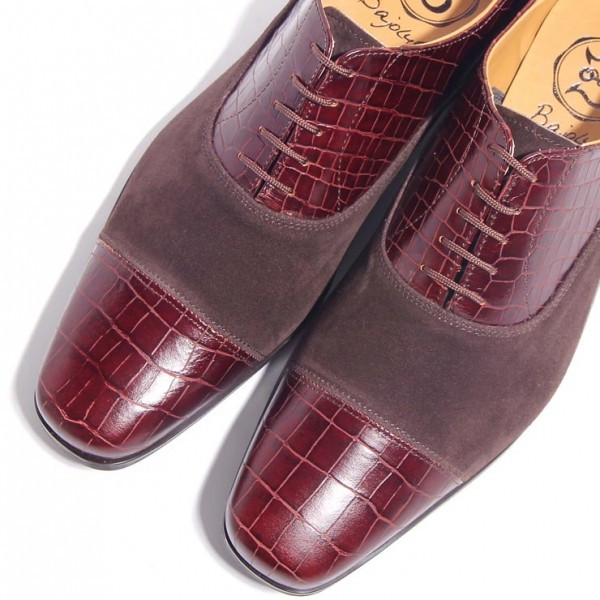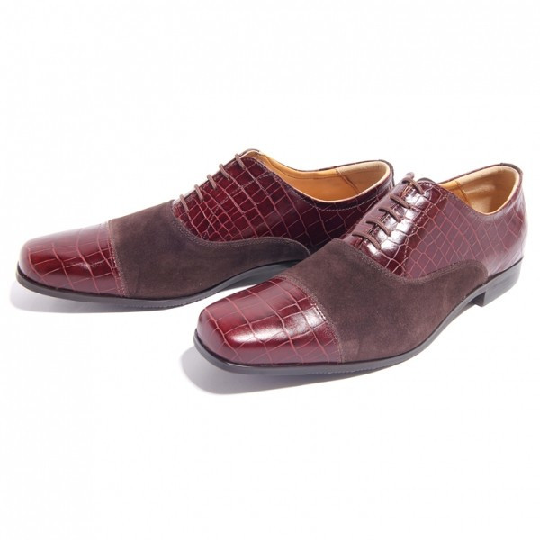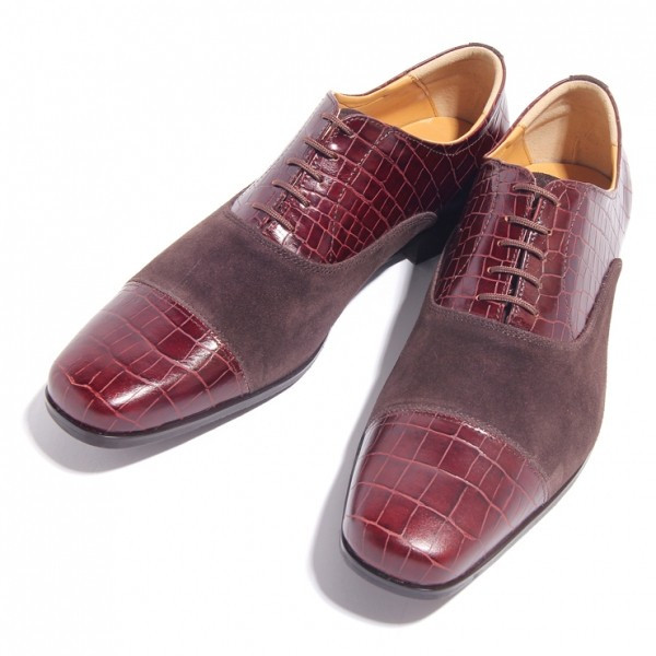 ストレートチップトゥ ボルドー×ベロア ダークブラウン