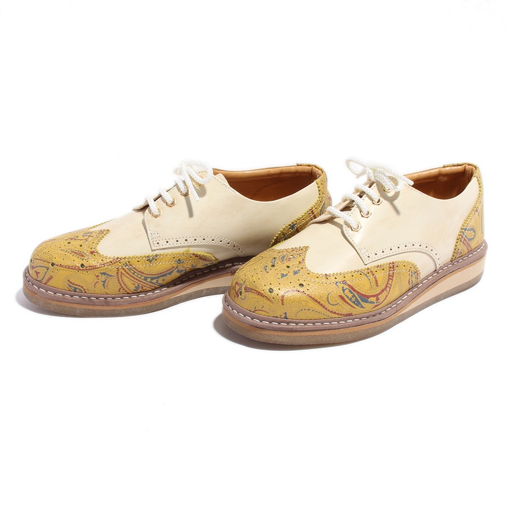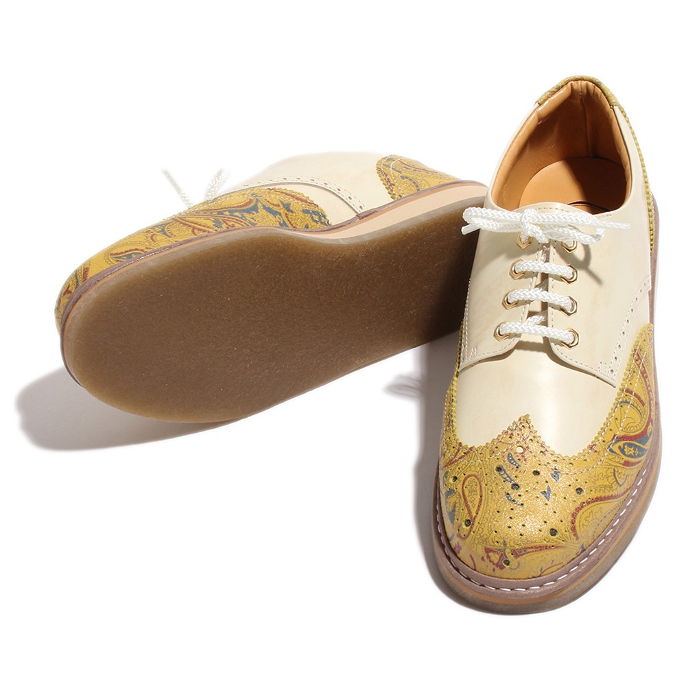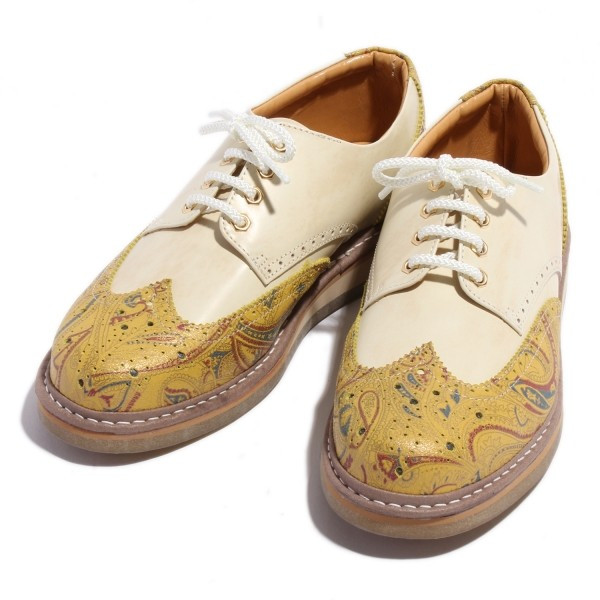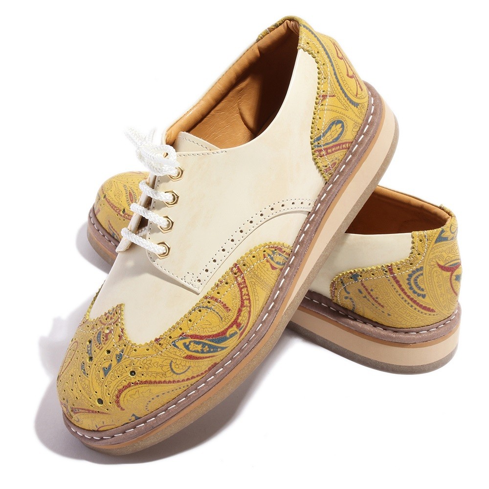 | 今回ご紹介するのは、ジーンズやスウェットパンツなどのカジュアルシーンに相性抜群な6色展開のレザーシューズ。厚めのクレープソールを装備する事でぼってりとした可愛いフォルムに。女子ウケ間違い無しの好印象スニーカー。ヒモ穴部分には珍しい六角ハトメを装着し、つま先にはメダリオンを施している。6色履きこなせればセレブカジュアルスタイルの完成だ!