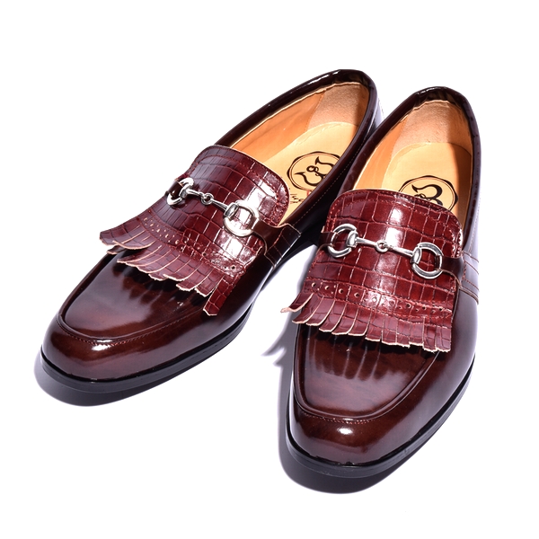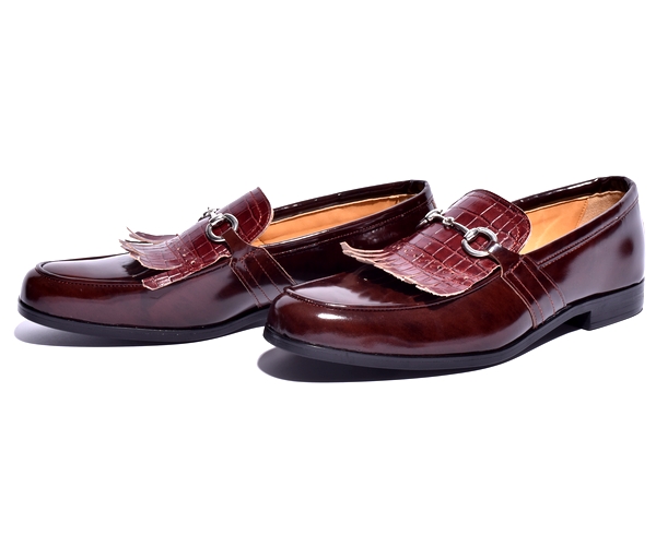| 【BajoLugo×GCTコラボ企画!!】シルバービットの激渋タッセルロー ファーです! 最高級の牛革皮革に本物のように再現されたクロコの型押しを施しました。 【オーダーの場合お好みのビットに変更可能です。】 |
