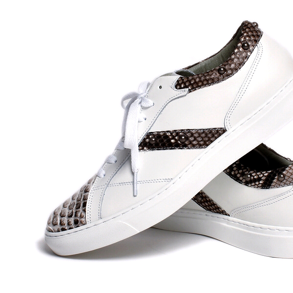 【BajoLugo/バジョルゴ】 レザー スニーカー 本パイソンマットホワイト × スムースホワイト
