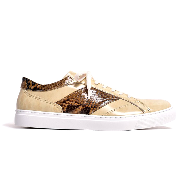 【BajoLugo/バジョルゴ】 レザー スニーカー 本パイソン マスタード × ムラ染め オフホワイト