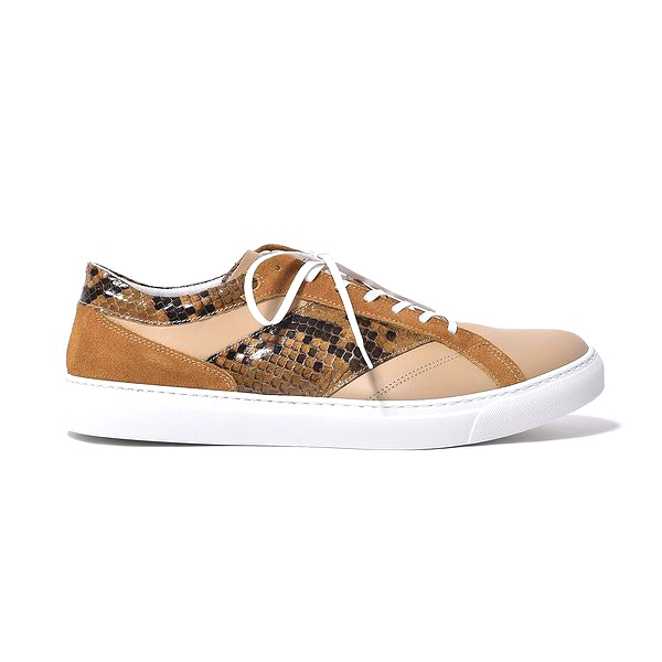 【BajoLugo/バジョルゴ】 レザー スニーカー 本パイソン ライトブラック × ムラ染め ダークブラウン