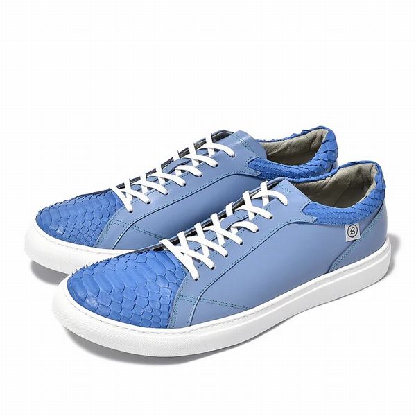 レザー スニーカー スムースレザー × 本パイソン スカイブルー