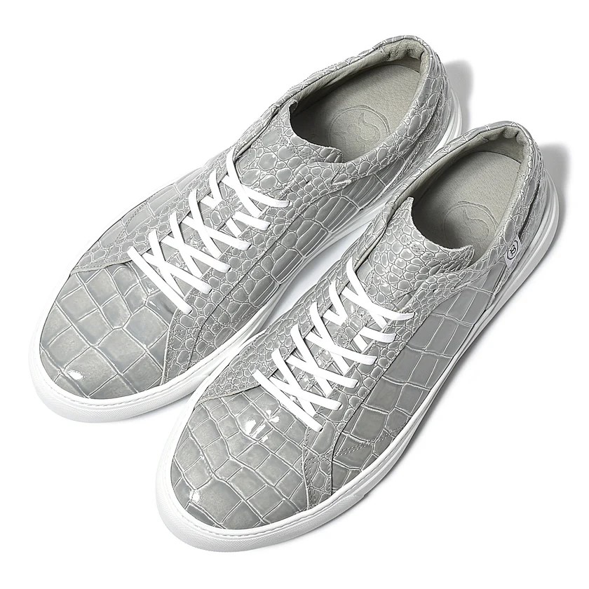 【BajoLugo/バジョルゴ】 レザースニーカー エナメル クロコ 型押し ライトグレー
