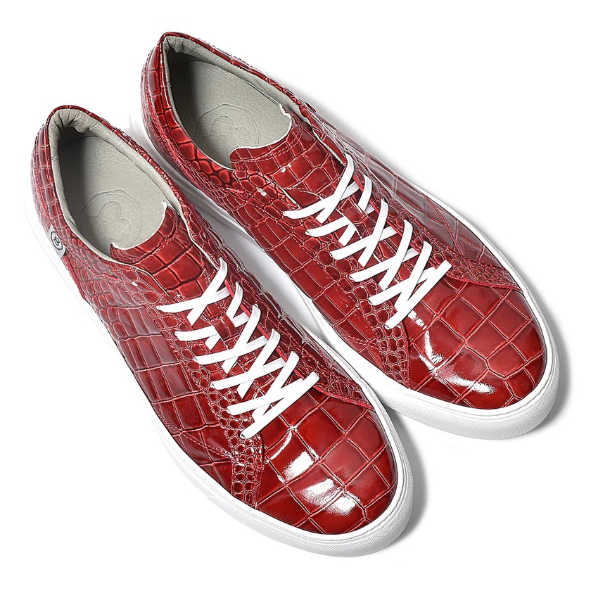 ウィングチップ レザー スニーカー レザースニーカー クロコダイル型押しホワイト×エナメルホワイト