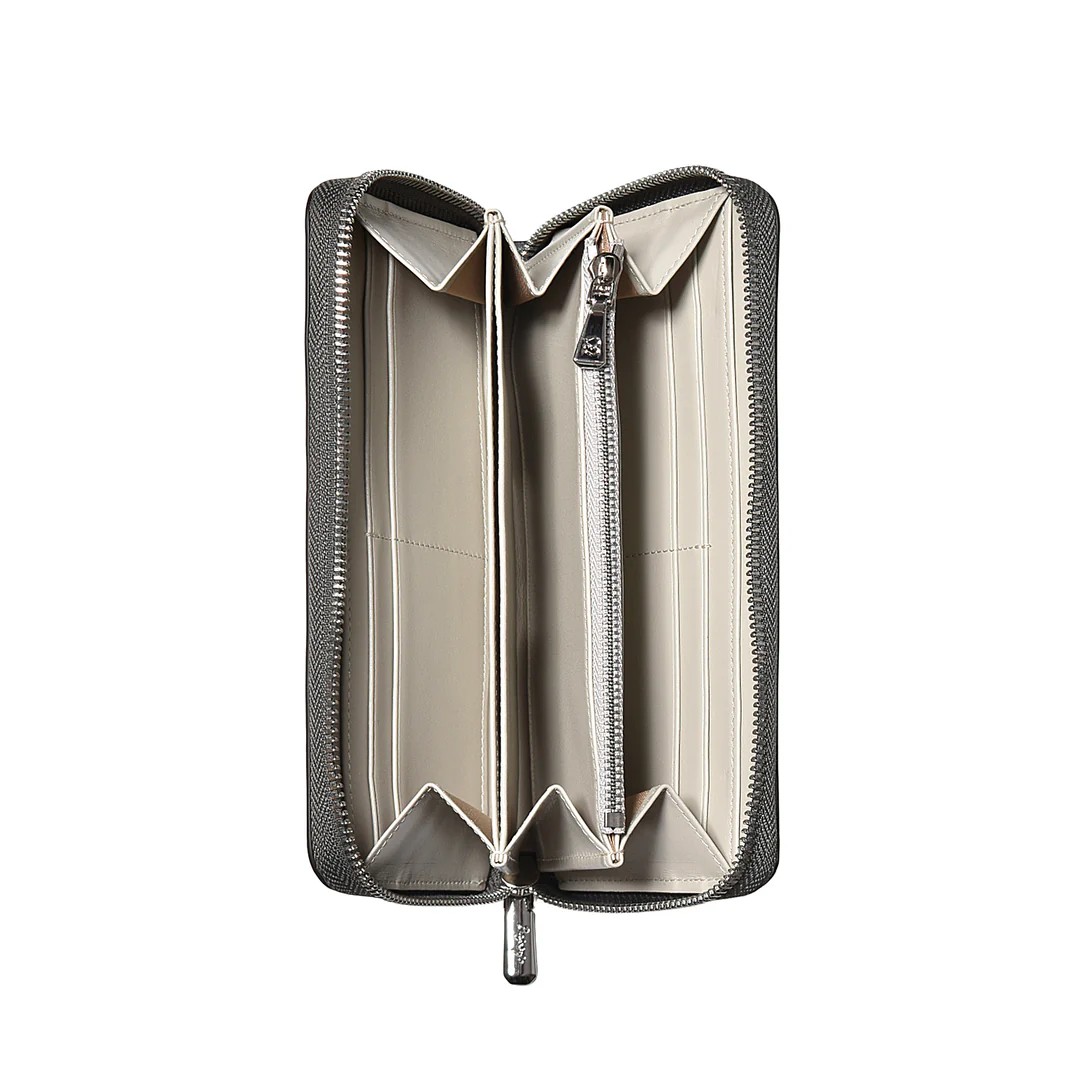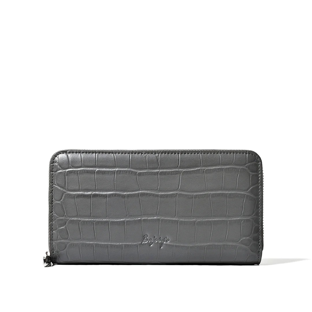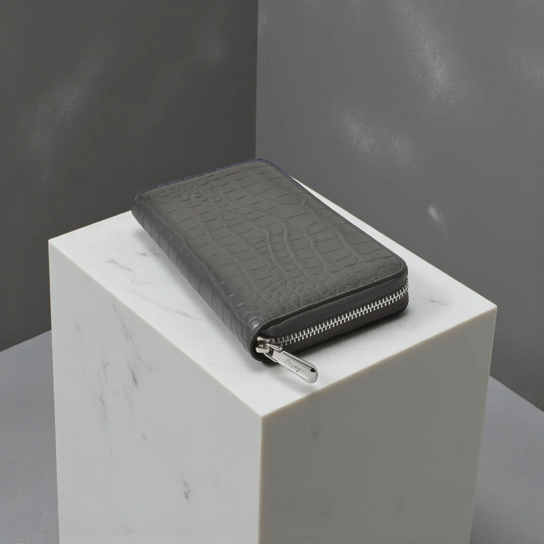 | 今回ご紹介するのは、多数のご要望により待望の「ラウンド財布」が復活。名だたる超一流ブランドの縫製を担う海外トップ工場から逆指名で依頼を受け、縫製は海外で、最終仕上げは日本で行う“ハイブリッド製造”。ステッチ精度、仕立ての張り、手に吸い付くような持ち心地──どれを取っても規格外の完成度です。素材は牛革に迫力あるクロコ型押しを施し、贅沢なセンター取りで模様の流れが美しく均一。カラーはイエロー、トープ、ベイビーブルー、ネイビーブルー、ダークグレー、ブラックの選べる6色展開。内装はオール牛革仕様で、カードポケット8、札入れ2、小銭入れ1、フリーポケット4と収納力も抜群。型崩れしにくいガチっとした設計で長く愛用できる一品です。
