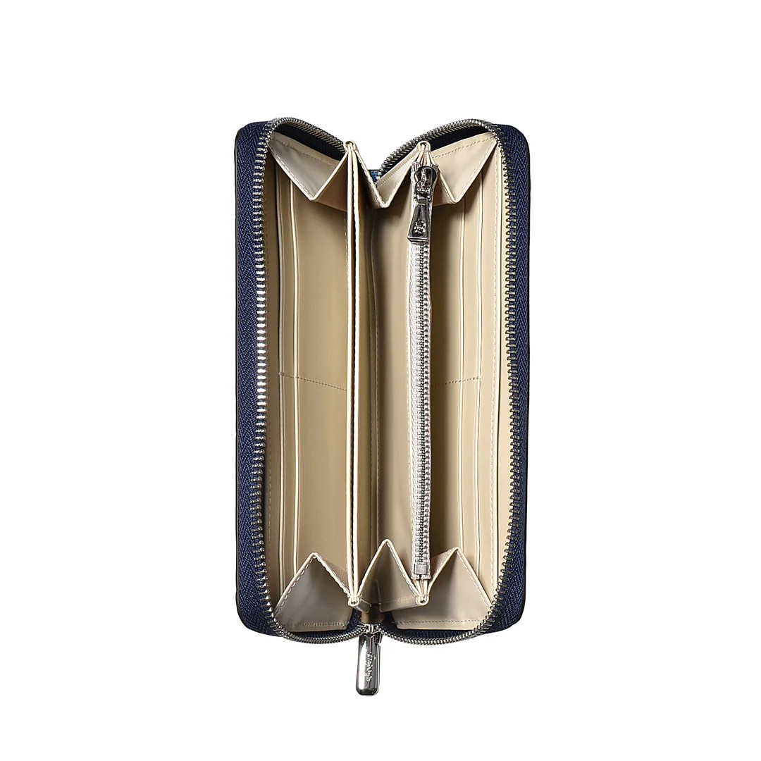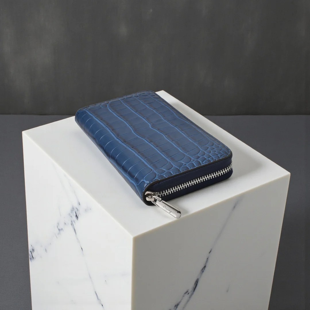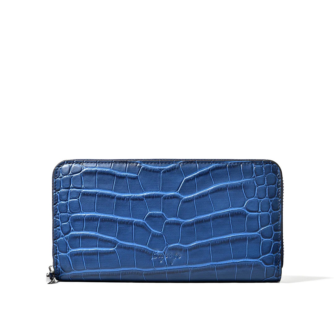 | 今回ご紹介するのは、多数のご要望により待望の「ラウンド財布」が復活。名だたる超一流ブランドの縫製を担う海外トップ工場から逆指名で依頼を受け、縫製は海外で、最終仕上げは日本で行う“ハイブリッド製造”。ステッチ精度、仕立ての張り、手に吸い付くような持ち心地──どれを取っても規格外の完成度です。素材は牛革に迫力あるクロコ型押しを施し、贅沢なセンター取りで模様の流れが美しく均一。カラーはイエロー、トープ、ベイビーブルー、ネイビーブルー、ダークグレー、ブラックの選べる6色展開。内装はオール牛革仕様で、カードポケット8、札入れ2、小銭入れ1、フリーポケット4と収納力も抜群。型崩れしにくいガチっとした設計で長く愛用できる一品です。