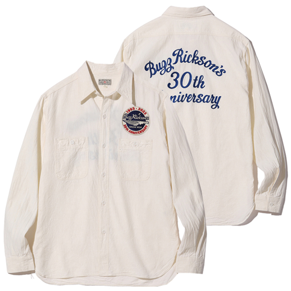 バスリクソンズ 30周年 長袖 刺繍 シャンブレー ワークシャツ BUZZ RICKSON'S OFF WHITE CHAMBRAY WORK