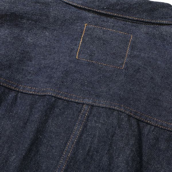 | 今回のモデルは、フロントや袖口のタックボタンが、パンツのフライ用のスモールボタンからトップ用のフルサイズに変わって間もない時代の1936年モデル・デニムブラウス。経糸7番×緯糸7番の未熟な紡績のムラ糸を使用した13.5oz.セルビッジデニムに、戦前らしいオレンジがメインのステッチワークが映えている。左胸ポケットのフラップの裏側にはライトオンスデニムを使用し、前身頃の身返し端にはセルビッジが見られる。デニムの生地幅の都合上、サイズ46以上の背中はEXTRA SIZEであるT-BACK仕様となる。 ■カラー/ノンウォッシュ(420N)/ワンウォッシュ(421A) ■素材表地/ コットン100% ■生産国/MADE IN JAPAN(日本製) 420N) NON WASH ■46サイズ /肩幅58cm 身幅64cm 着丈64cm 袖丈59.5cm (多少前後します) 421A) ONE WASH ■46サイズ /肩幅55.5cm 身幅61cm 着丈60.5cm 袖丈56.5cm (多少前後します) ※ワンウォッシュは洗い乾燥加工で縮みが発生するためサイスには個体差がございます。 ※サイズは多少の誤差はご容赦ください。 ※本作には防縮加工をしていない生機のデニム生地を使用しており、ノンウォッシュ(未洗い)の商品は洗濯後、各部の寸法に縮みが生じます。 ※モニターによって色の見え方が異なる場合があります。 ※商品によって柄の出方が異なる場合がございます。 |