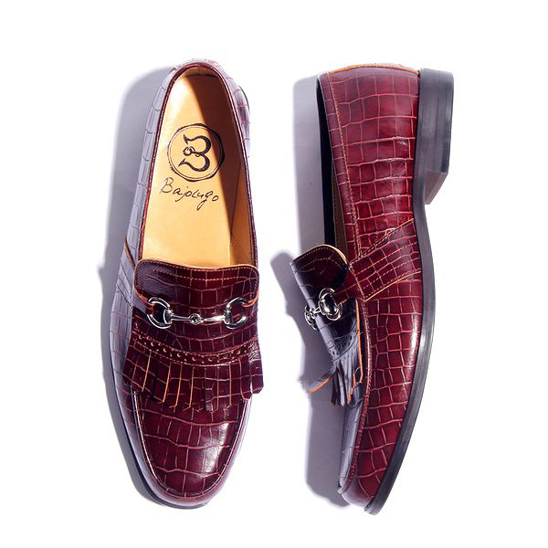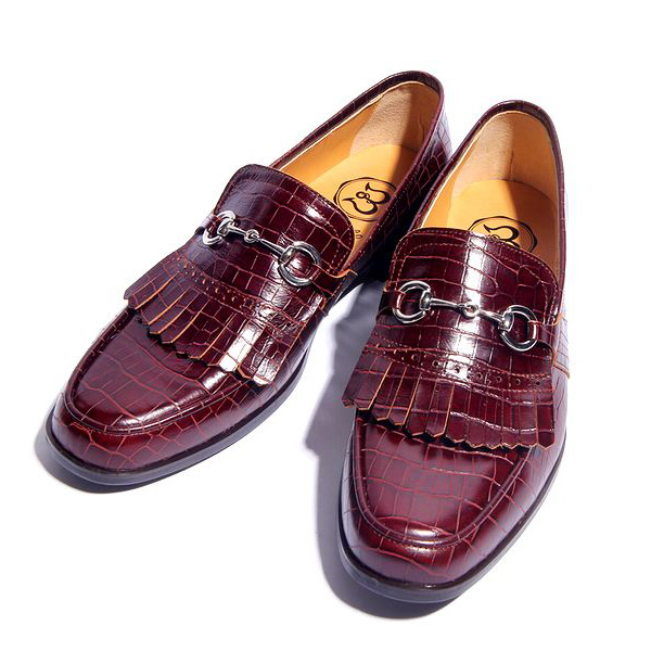 ボルドー クロコ タッセル ビット ローファー