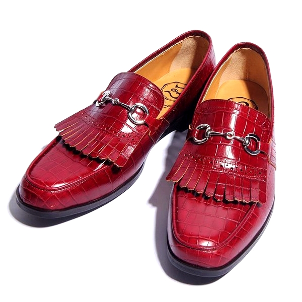 | 【BajoLugo×GCTコラボ企画!!】シルバービットの激渋タッセルロー ファーです! 最高級の牛革皮革に本物のように再現されたクロコの型押しを施しました。 【オーダーの場合お好みのビットに変更可能です。】 |