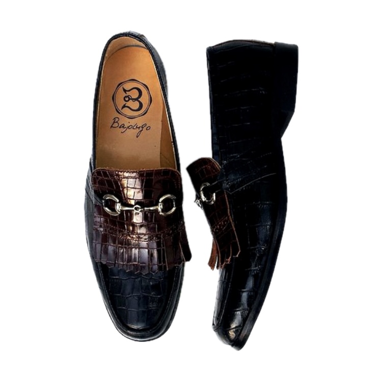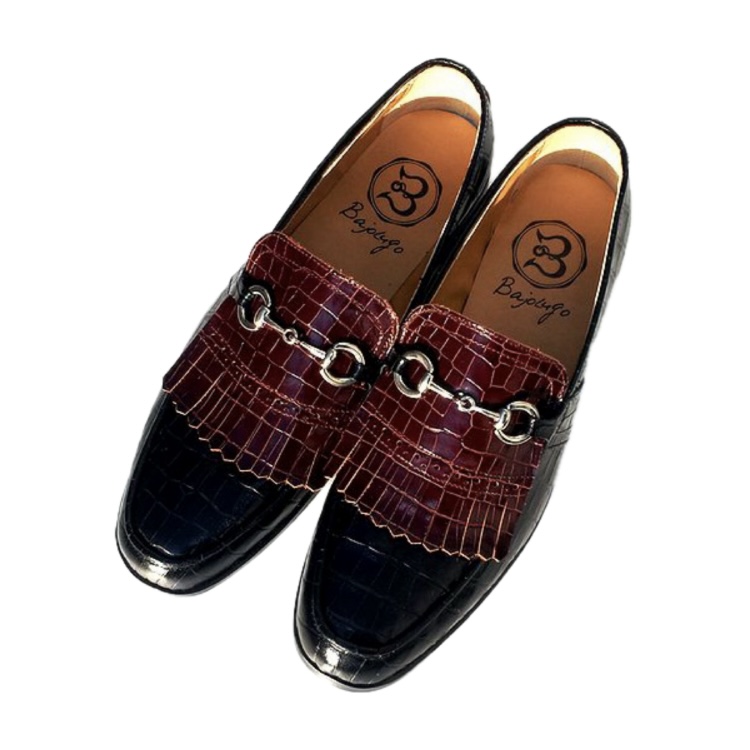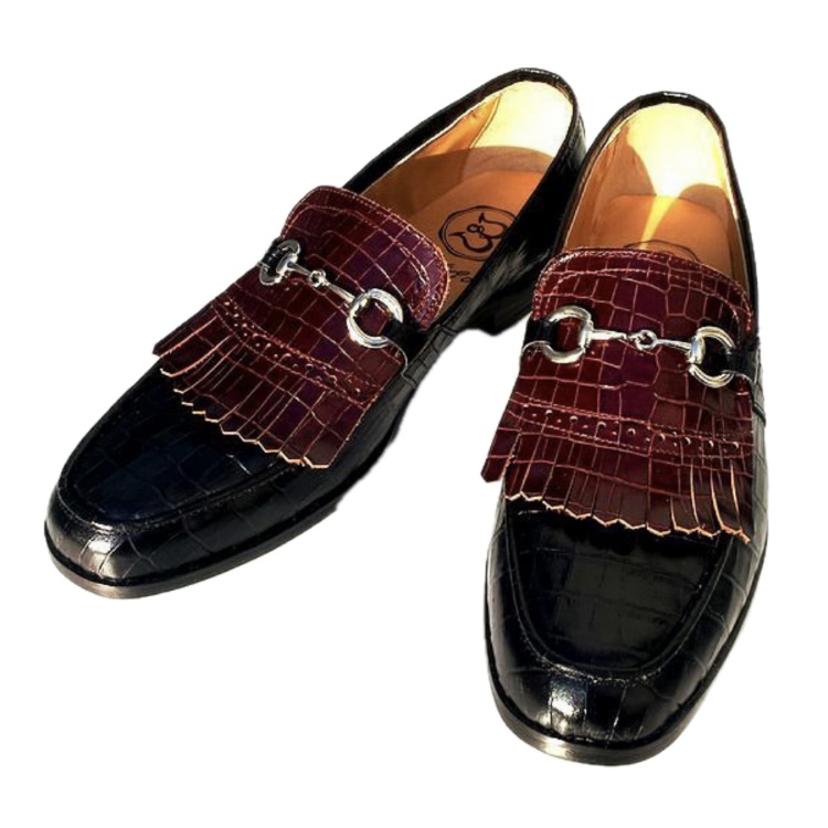 | 【BajoLugo×GCTコラボ企画!!】シルバービットの激渋タッセルロー ファーです! 最高級の牛革皮革に本物のように再現されたクロコの型押しを施しました。 【オーダーの場合お好みのビットに変更可能です。】 |