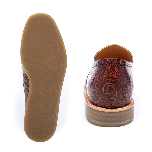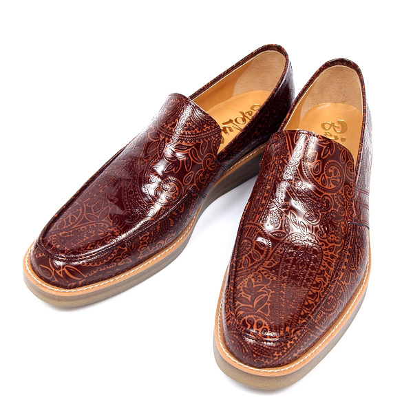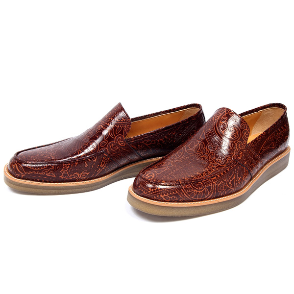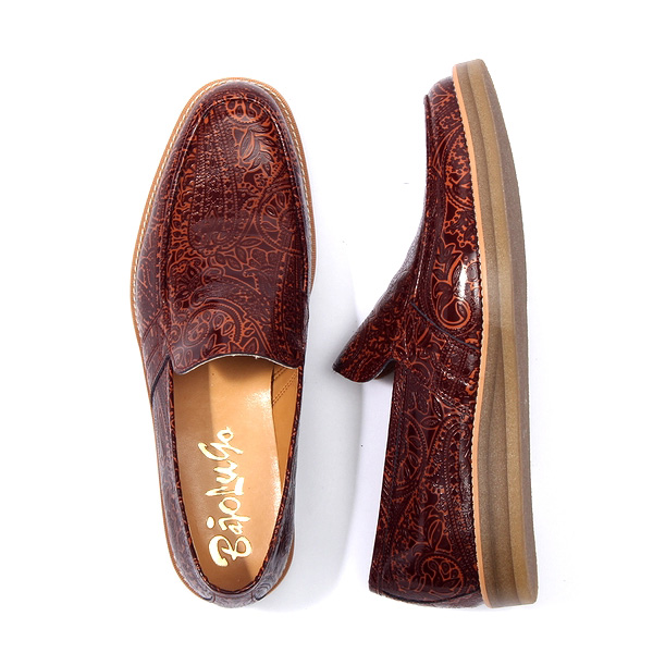 『BajoLugo/バジョルゴ』ブラウンペイズリー 型押し クレープソール メンズローファー