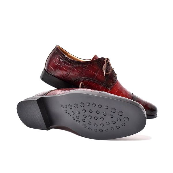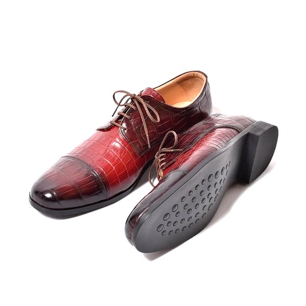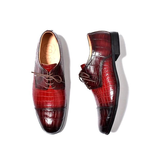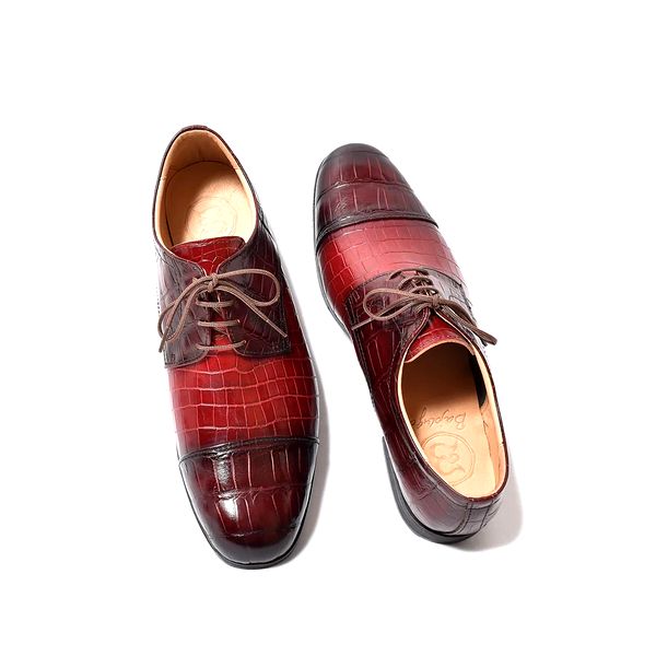 | ワインとボルドー2色のクロコ型押しレザーをMIXさせたストレートチップ。模様にもこだわり大小のクロコ模様を使い分ける事でリアルさを表現。職人の手作業で専用クリームを何層にも塗り重ね、アンティーク仕上げを施した。その印象は数十万円はする本クロコにも負けじ劣らない迫力。型押しシューズの枠を遥かに超えた存在感だ。見た目はフォーマルだが高いクッション性を誇り、長時間歩いても足に負担を掛けないシューズだ。インソールには低反発クッションスポンジ、アウトソールにはラバーソールを採用する事で柔らかな履き心地を実現。フォーマルな革靴にはレザーソールと言う概念が定着されているが、BajoLugoはその革底にあるフォーマル加減を残しつつも履き心地にも重点を置いた。また、木型にもこだわり日本人の足型に馴染むように設計。見た目だけでなく、中身にも重きを置いた革靴だ。 【特徴 】 ●ワインとボルドー2色のクロコ型押しレザーをMIX。 ●大小のクロコ模様を使い分ける事でリアルさを表現する。 ●職人の手作業で専用クリームを何層にも塗り重ね、アンティーク仕上げを施し色の深みと高級感を兼ね備える。 ●インソールには低反発クッションスポンジ。 ●アウトソールにはラバーソールを採用。 |