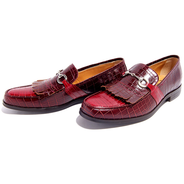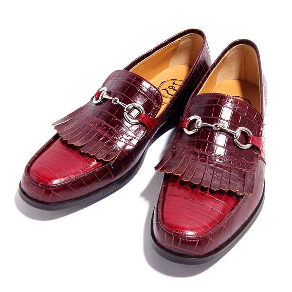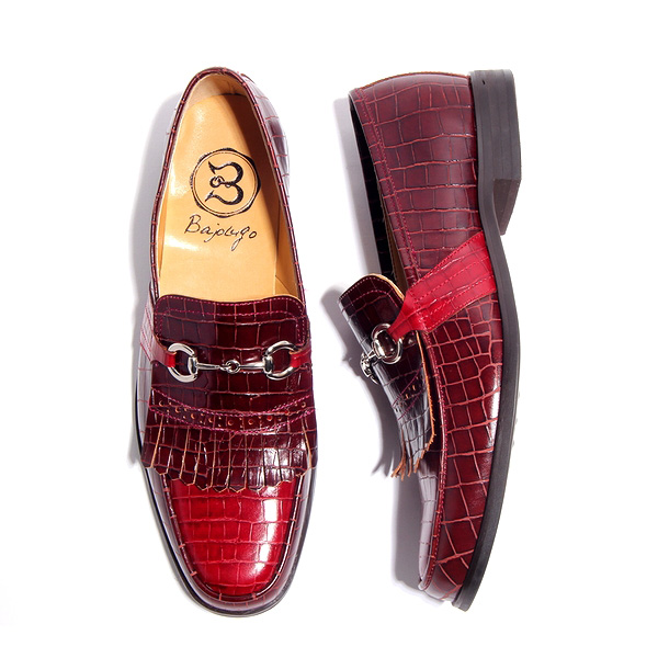 『BajoLugo/バジョルゴ』BajoLugo×GCT-別注ワイン×クロコダイル型押しボルドータッセルローファー シルバービット