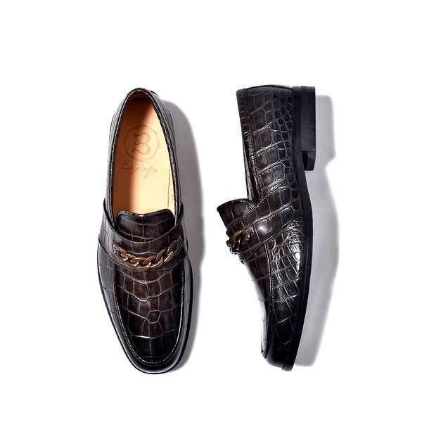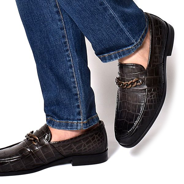 | 今回ご紹介するのは、チェーンビットが圧倒的な存在感のローファー。本体全面にクロコ模様をプレスした迫力満点の国産天然皮革を採用し、爪先は皮革専用クリームで光沢を纏わせたハイレベルなレザーローファー。ズッシリ重厚感のあるチェーン金具がワイルドさと男らしさも彷彿とさせる。ドレッシーなスーツスタイルは勿論の事、都会的なジーンズスタイルに合わせてもマッチする。内部にもこだわり柔らかさとクッション性に優れているので長時間歩いても疲れない。まるでスニーカーのようなはき心地を再現している。カジュアル化の一途を辿る大人ファッションにもチェーンローファーはオススメです。 ■カラー/ダークアッシュ ※サイズは多少の誤差はご容赦ください。 ※モニターによって色の見え方が異なる場合があります。 ※商品によって柄の出方が異なる場合がございます。 ※ご注文いただいた商品のクロコ模様と、写真のクロコ模様の大きさや位置が完全一致する訳ではございません。 裁断の取り都合により模様が異なる場合がございますが予めご了承いただきますようお願い申し上げます。 ※全ての革製品は合皮ではなく天然の素材を使用しております。 そのため、しわ、色むら、傷などそれぞれに個体差があり 全て均一の商品はございません。天然革の本来の魅力、味としてご理解お願いいたします。 上記の理由での返品は出来かねますので 何卒ご理解の上ご購入くださりますようお願い申し上げます。 |