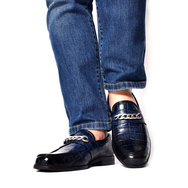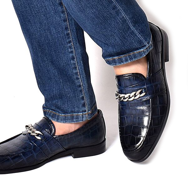 | 今回ご紹介するのは、チェーンビットが圧倒的な存在感のローファー。本体全面にクロコ模様をプレスした迫力満点の国産天然皮革を採用し、爪先は皮革専用クリームで光沢を纏わせたハイレベルなレザーローファー。ズッシリ重厚感のあるチェーン金具がワイルドさと男らしさも彷彿とさせる。ドレッシーなスーツスタイルは勿論の事、都会的なジーンズスタイルに合わせてもマッチする。内部にもこだわり柔らかさとクッション性に優れているので長時間歩いても疲れない。まるでスニーカーのようなはき心地を再現している。カジュアル化の一途を辿る大人ファッションにもチェーンローファーはオススメです。 ■カラー/ネイビー ※サイズは多少の誤差はご容赦ください。 ※モニターによって色の見え方が異なる場合があります。 ※商品によって柄の出方が異なる場合がございます。 ※ご注文いただいた商品のクロコ模様と、写真のクロコ模様の大きさや位置が完全一致する訳ではございません。 裁断の取り都合により模様が異なる場合がございますが予めご了承いただきますようお願い申し上げます。 ※全ての革製品は合皮ではなく天然の素材を使用しております。 そのため、しわ、色むら、傷などそれぞれに個体差があり 全て均一の商品はございません。天然革の本来の魅力、味としてご理解お願いいたします。 上記の理由での返品は出来かねますので 何卒ご理解の上ご購入くださりますようお願い申し上げます。 |
