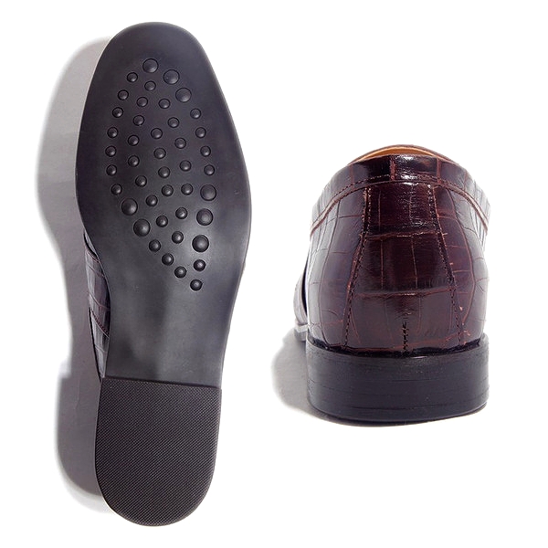 今回ご紹介するのは、クラシカルなローファーにモダンをMIXさせたモードな1足!足に負担の少ないインソールで履き心地も満足なイチオシローファー。タッセルがいいアクセントに!エナメル素材で高級感がアップ! 色はクロコダイル型押しダークブラウン。普段使いしやすいデザインになっている。