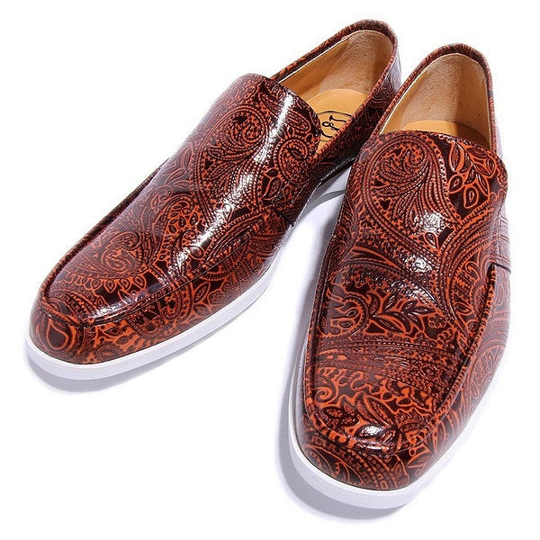 今注目のレザーシューズブランド“BajoLugo”。ペイズリー柄の型押しレザーはシックなのに派手!ドレスシューズとしてカッチリとした服に合わせても、問題なくこなしてくれる。色はブラウン。 バジョルゴでも定評のあるローファーだから、履きやすさも秀逸。!