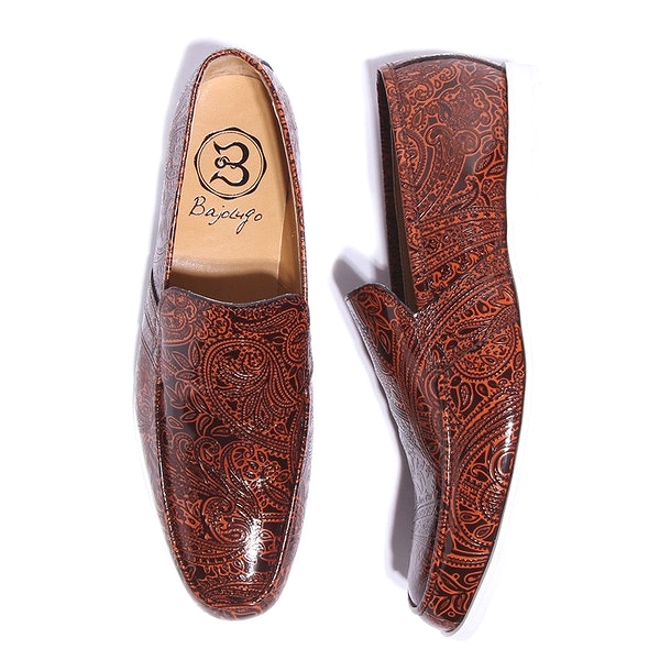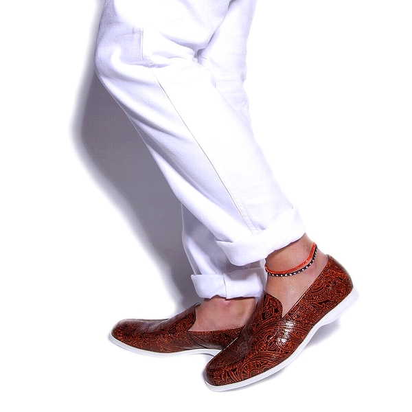 『BajoLugo/バジョルゴ』レザーローファー ペイズリー型押し ブラウン ホワイトソール