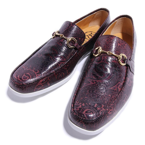 レザーローファー ペイズリー型押しパープル ゴールドビット