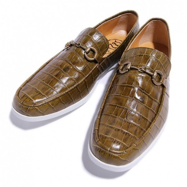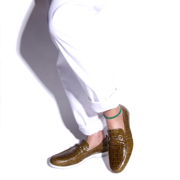 | 今回ご紹介するのは、お洒落は服だけで成立するのではなく、要となるのは足元を飾る靴。その印象一つで完成度が高まる。大人には欠かせない渋カラー。落ち着いた色味にクロコの高級感が見事にマッチしてダンディな一足に!色はクロコダイル型押しカーキ。アッパーにはアンティークゴールドビットが大人な雰囲気を醸し出す.。 | ||||||||||||||||||||||||||||||||||||