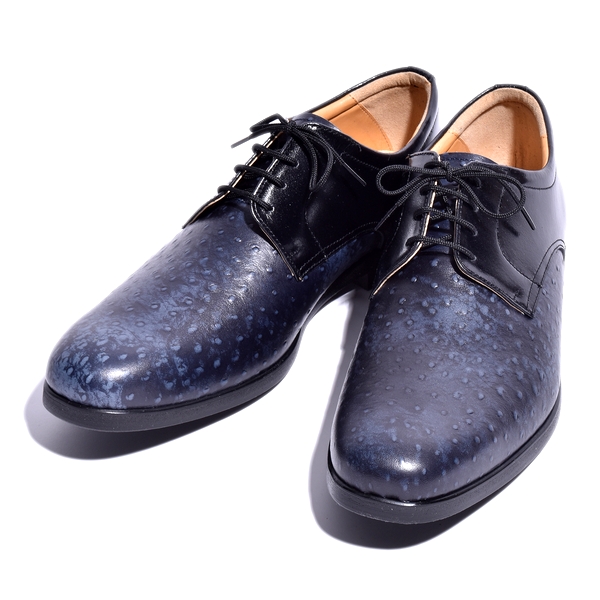 今回ご紹介するのは、革靴の基本形とも言われ、ベーシックな作りが特徴のプレーントゥ。スムースレザーを纏ったドレッシーなオーストリッチ型押しでカジュアルを格上げ!ムースレザーとのコラボはドレスシューズでありながらも大人の週末スタイルに最適。エキゾチックレザーが男らしさの中にもさりげない知性を感じさせる。 色はオーストリッチ型押しネイビー×スムースブラック。アウトソール素材はクレープソールを使用。抜群のフィット感をお試しください。