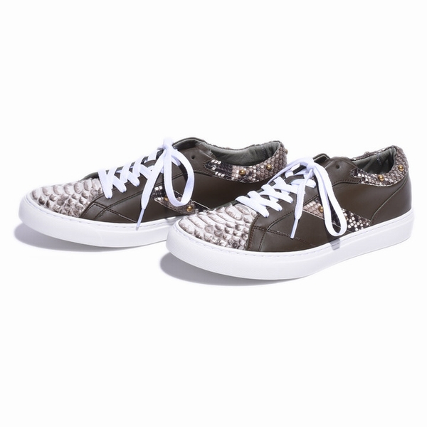| 今回ご紹介するのは、大人の足元に差別化を図る、本パイソンを使用した最高級のレザースニーカー。マット仕上げ(艶なし)加工されており、独特のウロコが美しくハードな印象をあたえてくれる。パイソンを背割りにし、腹のウロコを活かしたバックカットを使用。インソールにはイタリアを代表する底製造会社である、ウェアライト社の発砲スポンジソールを使用。足の負担を最小限に抑え、