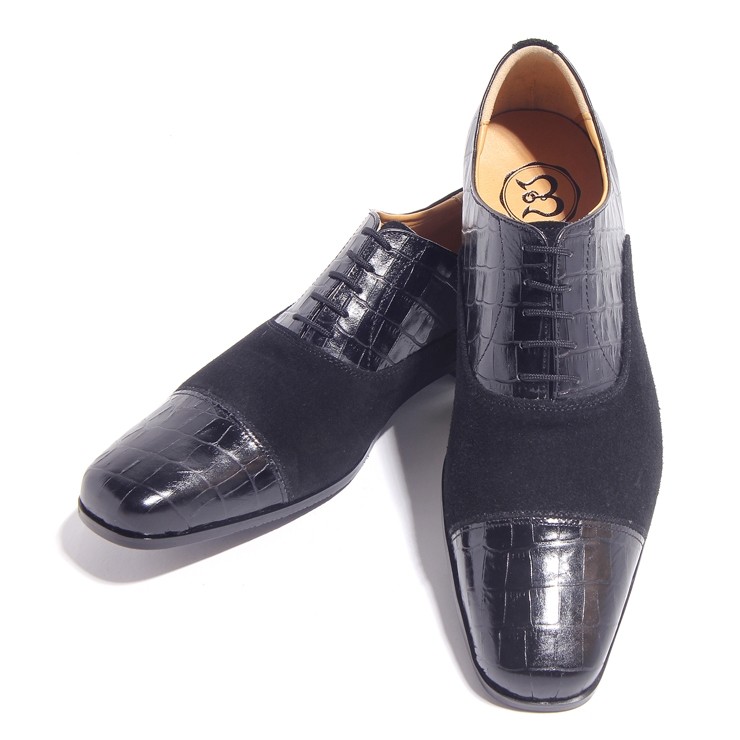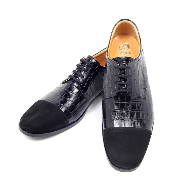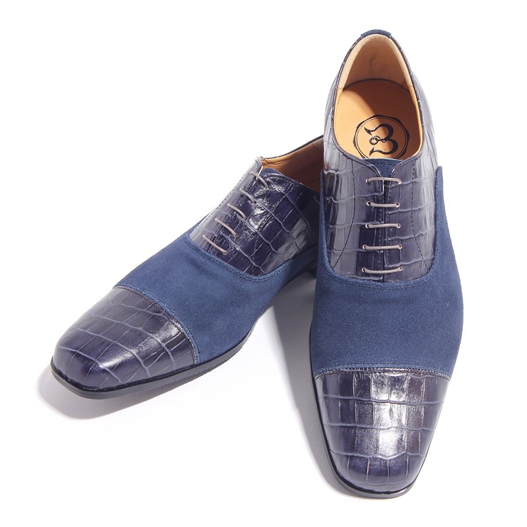プレーントゥ ペイズリー型押しネイビー×スムースブラック