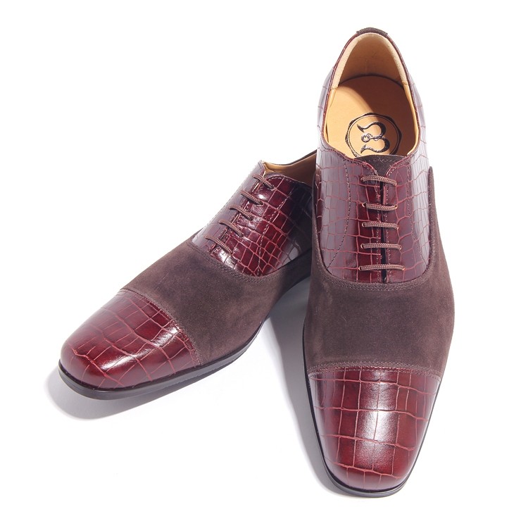 プレーントゥ ペイズリー型押しブラウン×ムラ染めダークブラウン