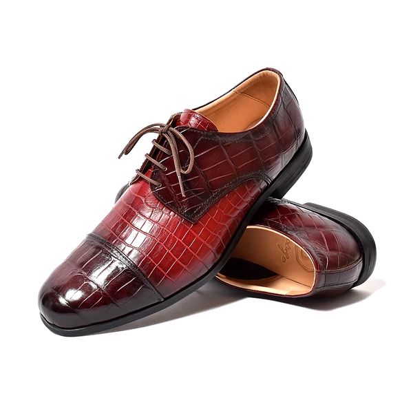 【BajoLugo/バジョルゴ】 ストレートチップ クロコ 型押し レザー アンティークライトグレー