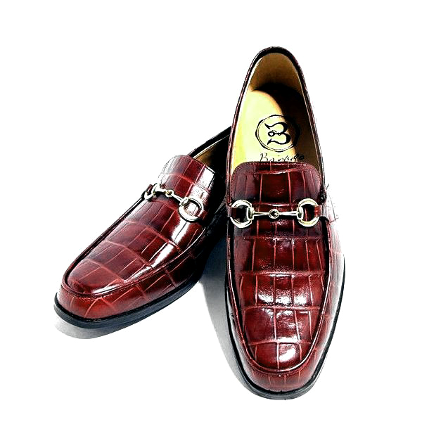 レザーローファー クロコダイル型押しレッド ゴールドビット
