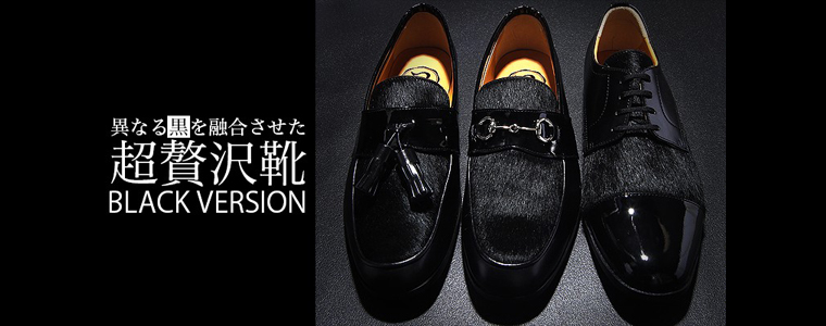 エナメルレザーブラック×クロコダイル型押しブラックホワイトソール