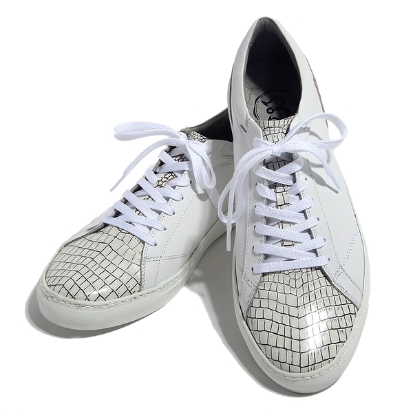 クロコダイル型押しホワイトラインブラック×スムースホワイト
