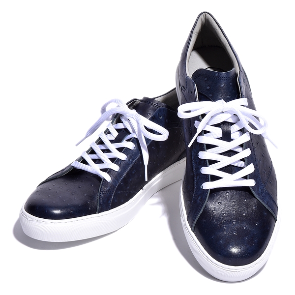 オーストリッチ型押しネイビー×レッド×スムースホワイト