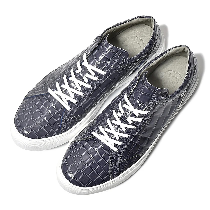 【BajoLugo/バジョルゴ】 レザースニーカー エナメル クロコ 型押し ライトグレー