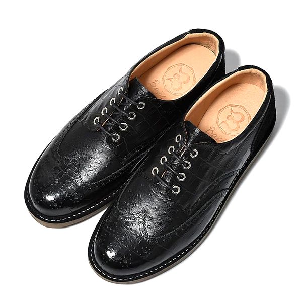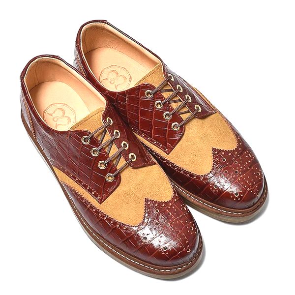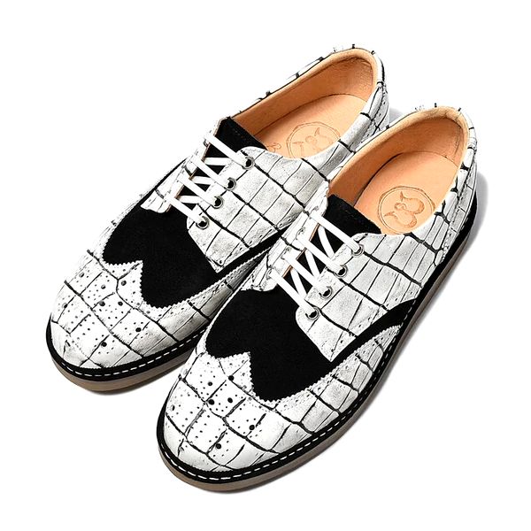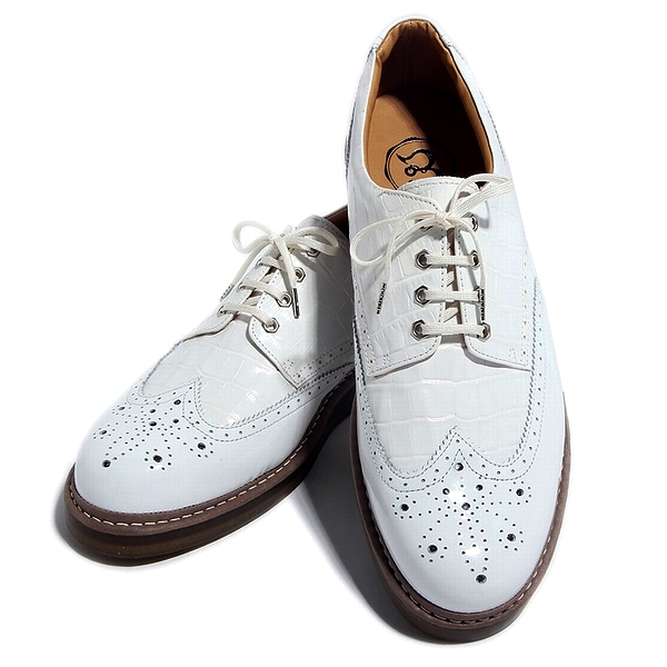 ウィングチップ レザー スニーカー レザースニーカー クロコダイル型押しホワイト×エナメルホワイト