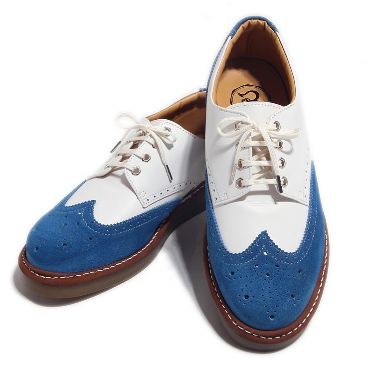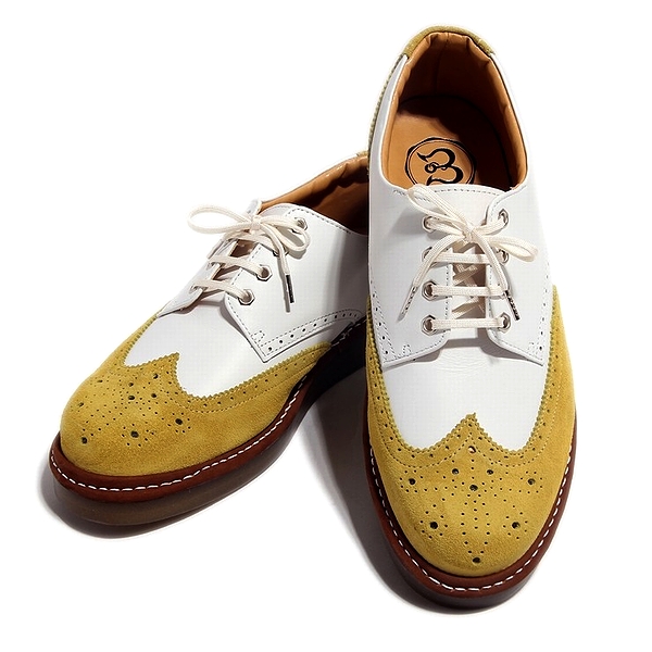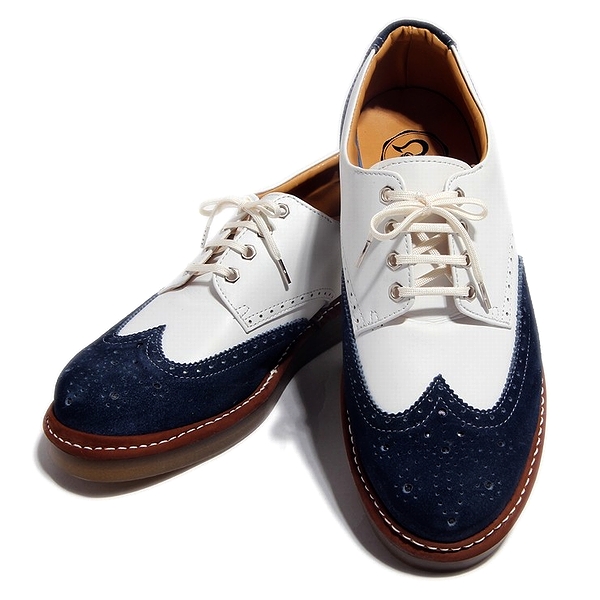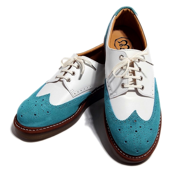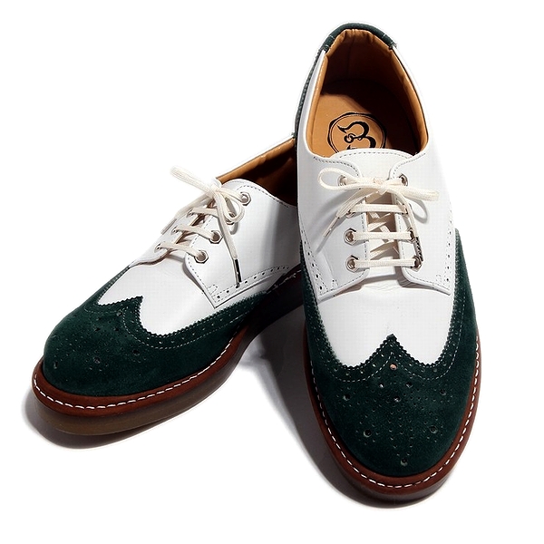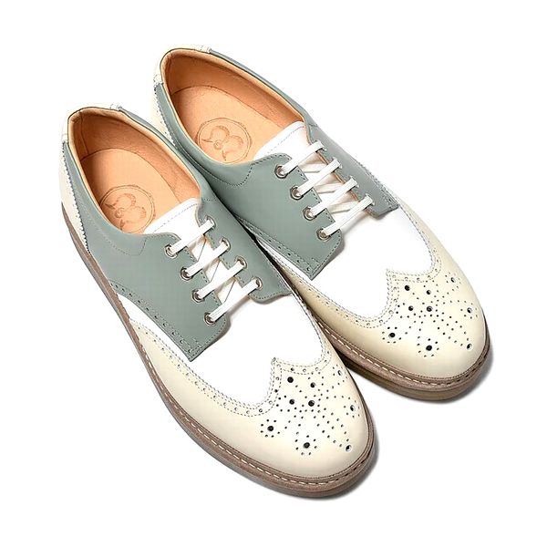 ウィングチップ レザー スニーカー スムースホワイト×ベロアエメラルドグリーン
