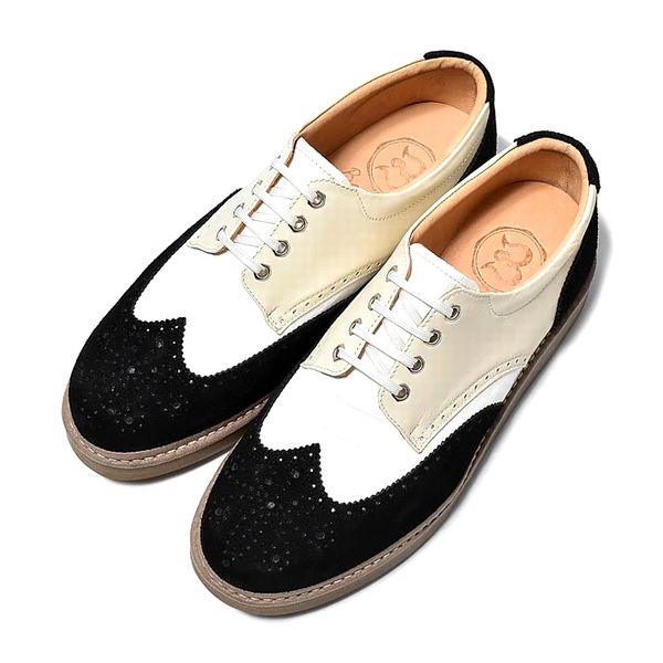 【BajoLugo/バジョルゴ】 ウィングチップ レザー スニーカー ブラック × ホワイト × オフホワイト