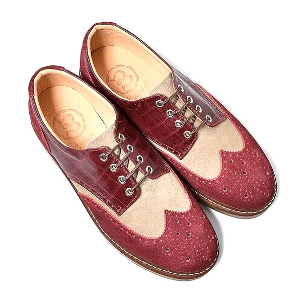 【BajoLugo/バジョルゴ】 ウィングチップ レザー スニーカー ワイン × ワイン × アッシュ