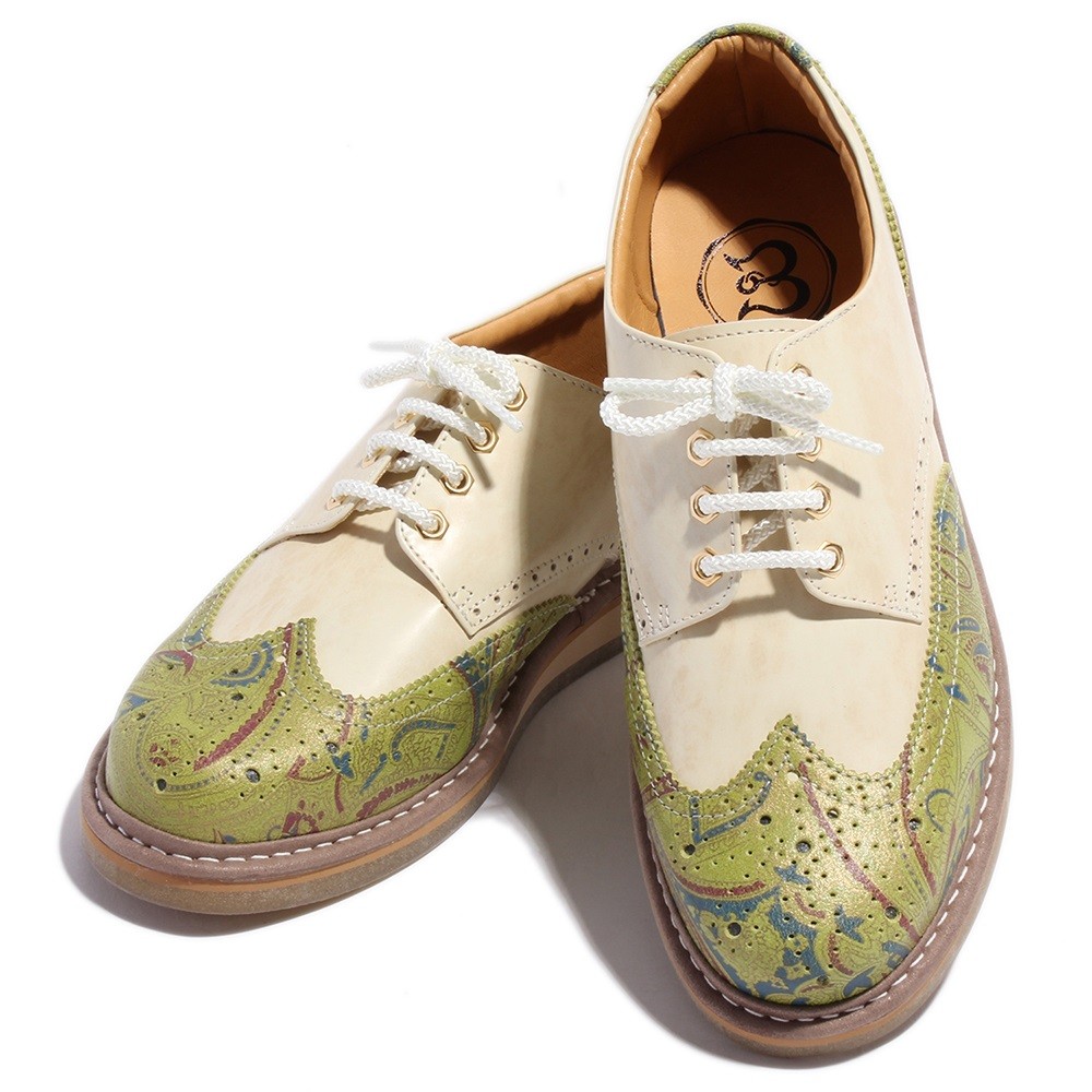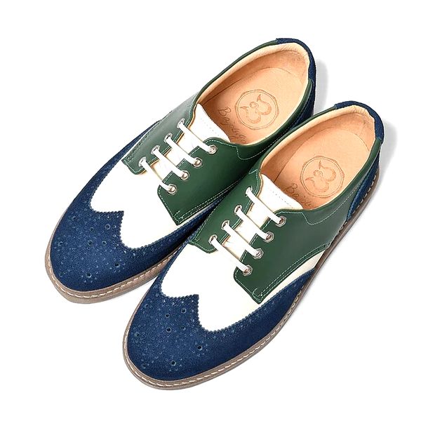 【BajoLugo/バジョルゴ】 ウィングチップ レザー スニーカー ネイビー × グリーン × オフホワイト